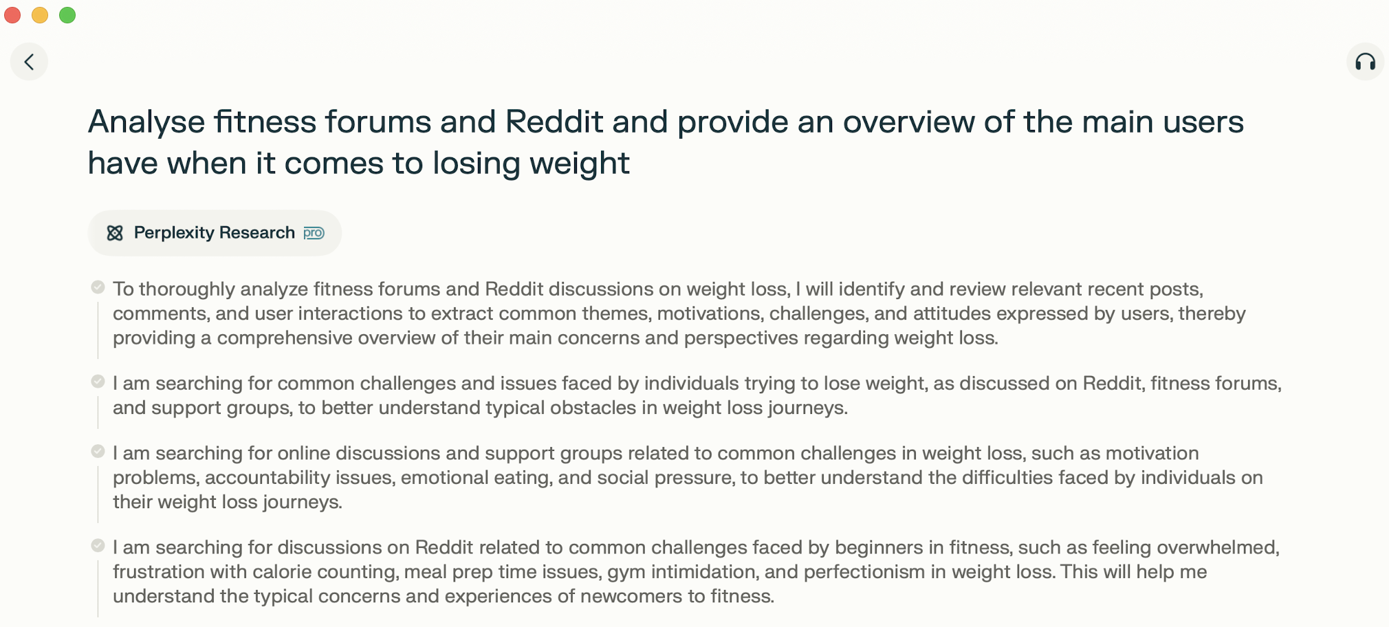 In a project focused on defining a content strategy for a weight loss app AI was used to analyse niche related forums and Reddit to get answers on what users are discussing online regarding weight loss.