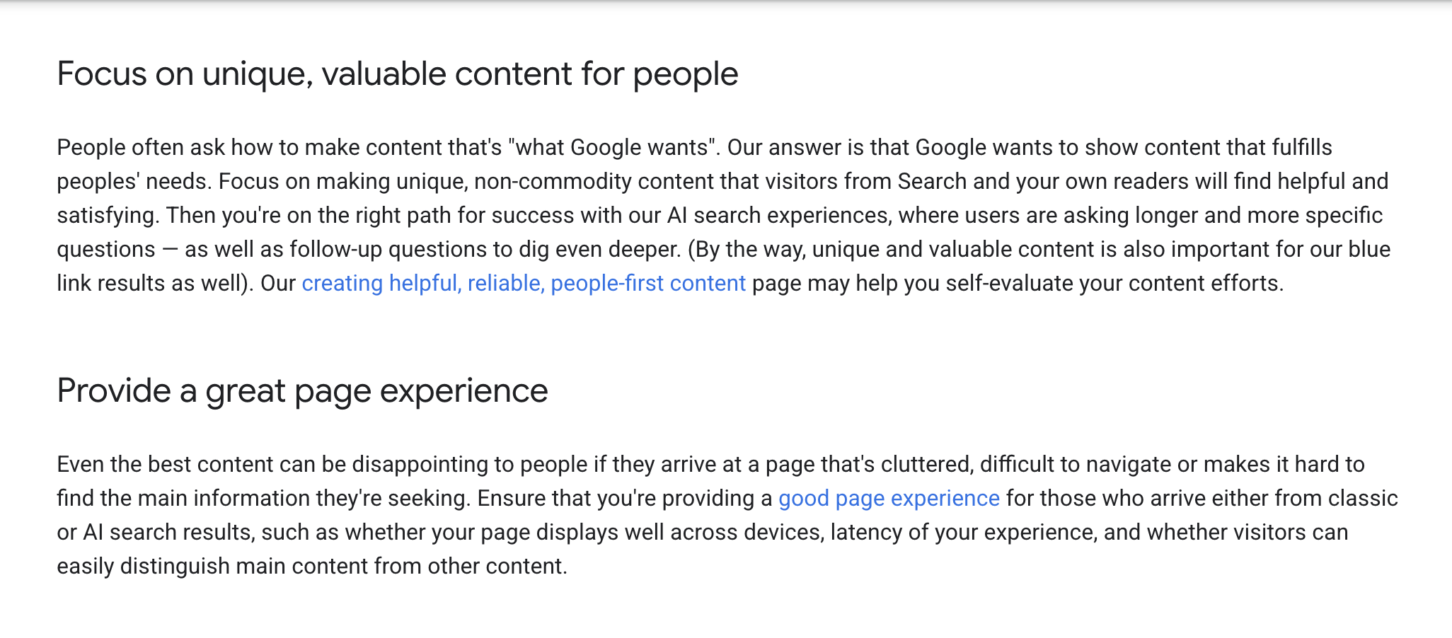 Google’s recommendation on how to perform well in the AI-powered search results: